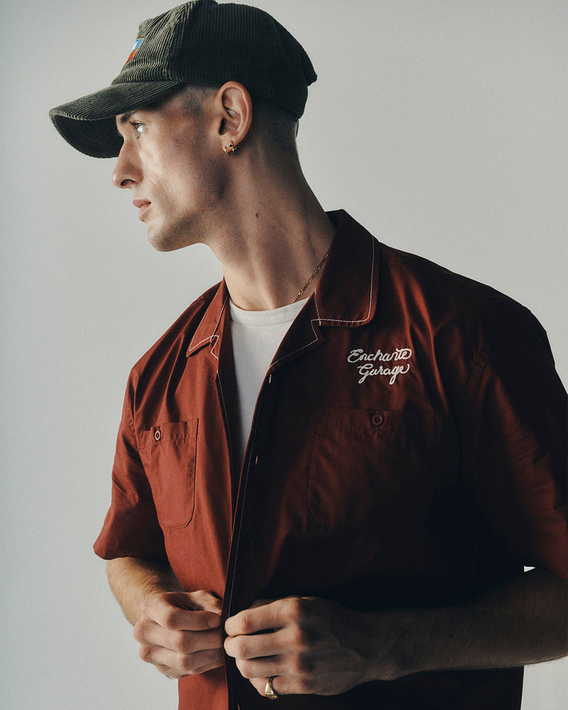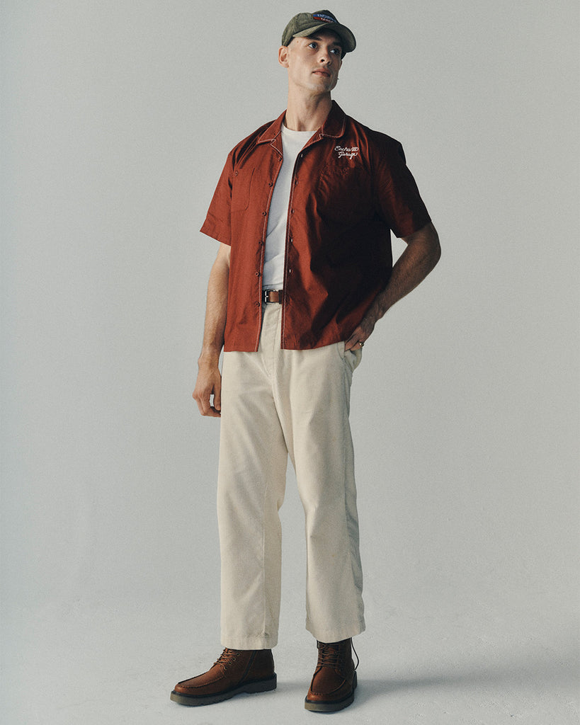 A cleaner take on the classic garage shirt. Made from crisp cotton poplin with contrast stitching and a chainstitched logo at the chest, this short-sleeve button-up is structured, sharp, and ready for work or weekend.