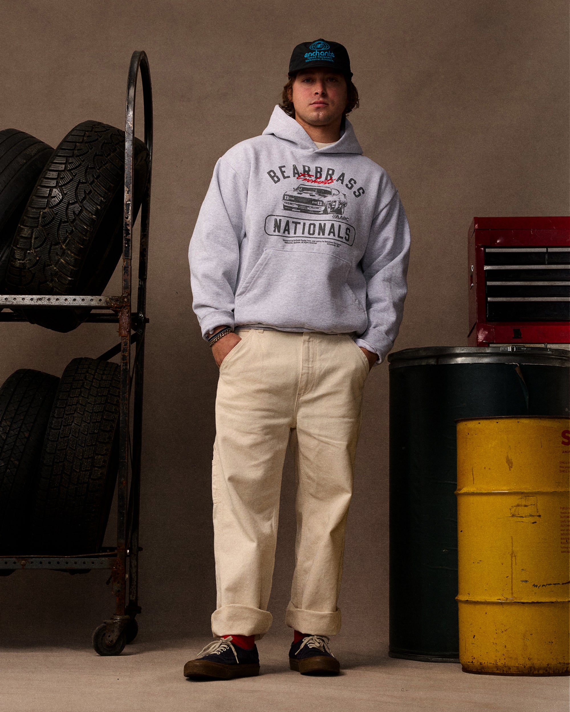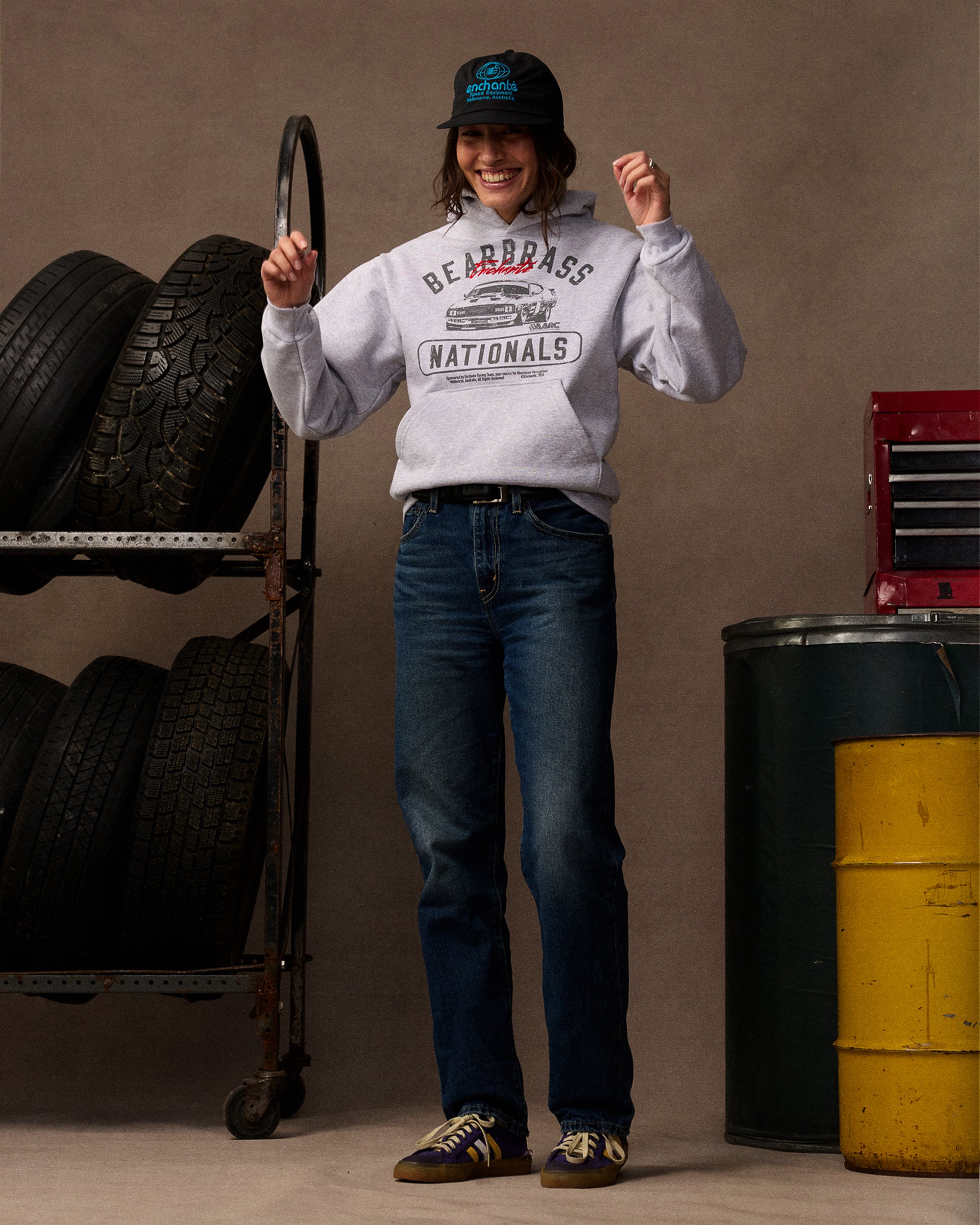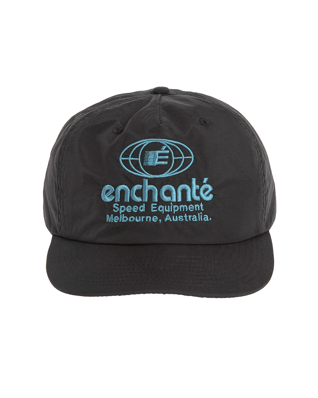 Vintage motorsport graphics give this cap a classic paddock look. Made in the USA from cotton with embroidered Enchanté branding at the front.