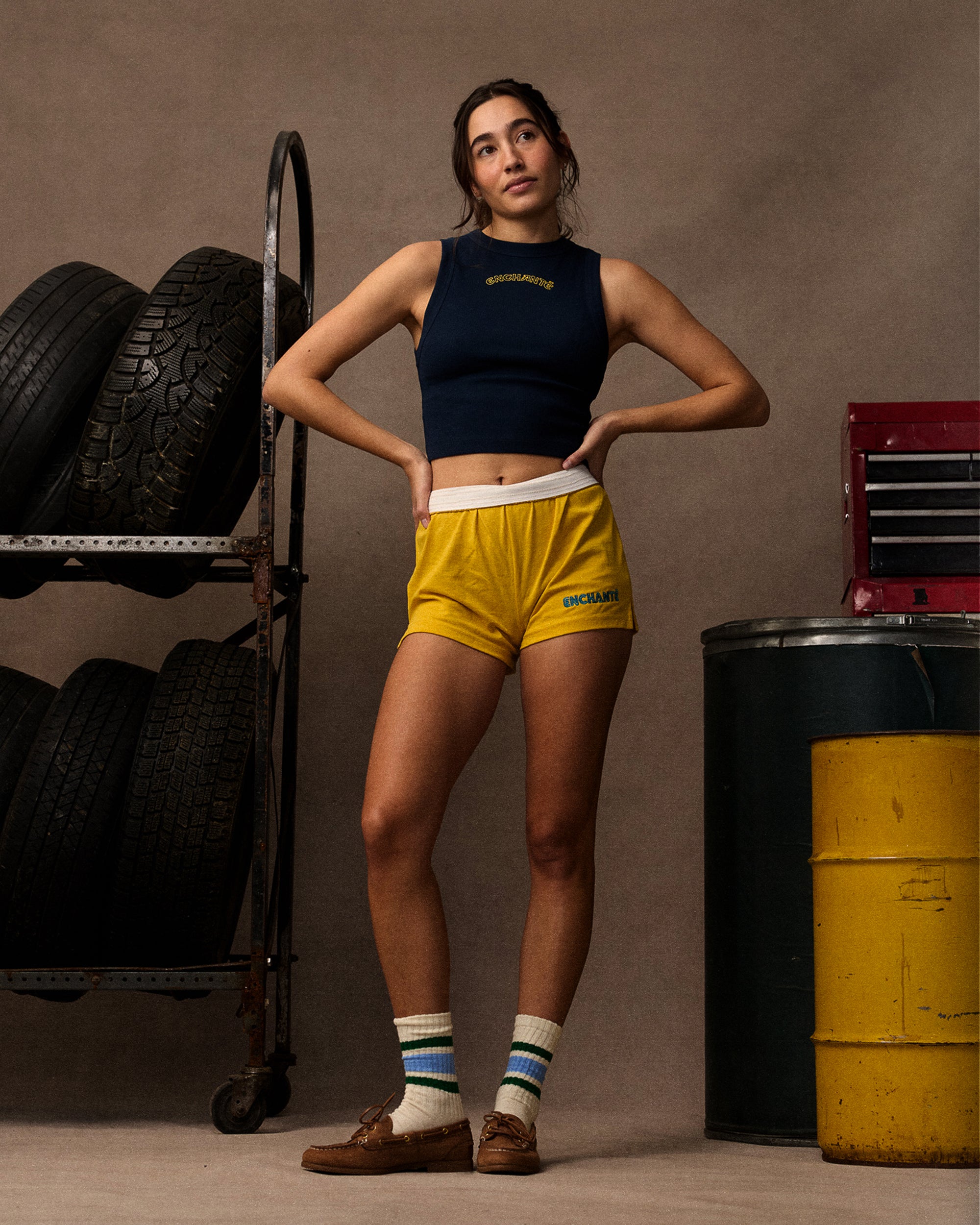 An embroidered Enchanté logo adds a subtle team touch to this relaxed trackside style. Crafted in the USA from a soft cotton-spandex blend.