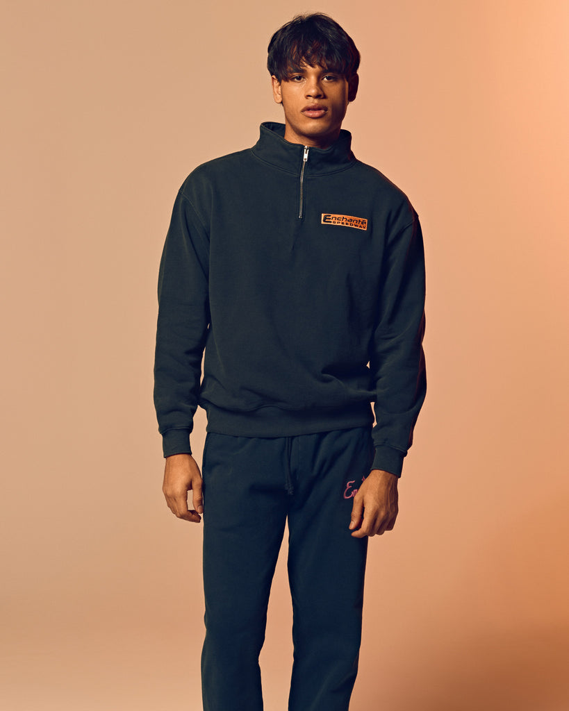 Bold racing inspiration meets elevated simplicity in the Speedway Quarter Zip, featuring a high-contrast chest graphic and clean silhouette. Finished with a garment-washed texture that gives each piece its own subtle variation and lived-in character.