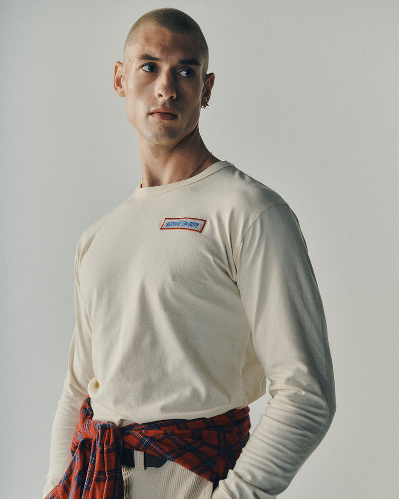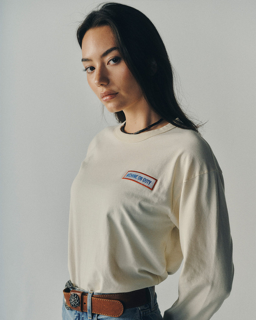For the mechanic off duty, this long sleeve is all about function and character. With front and back graphics inspired by old-school service stations, the garment-dye process gives it that just-washed-soft feel and a subtle fade.