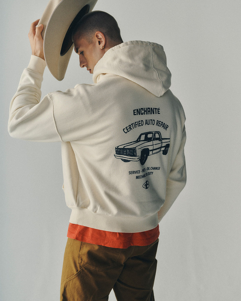From the back of the shop to the front of your closet. The Certified Repair Hoodie is a tribute to neighborhood garages and long-haul rides. With a bold back graphic and just the right amount of wear-in, it’s made for those who appreciate the beauty of utility.