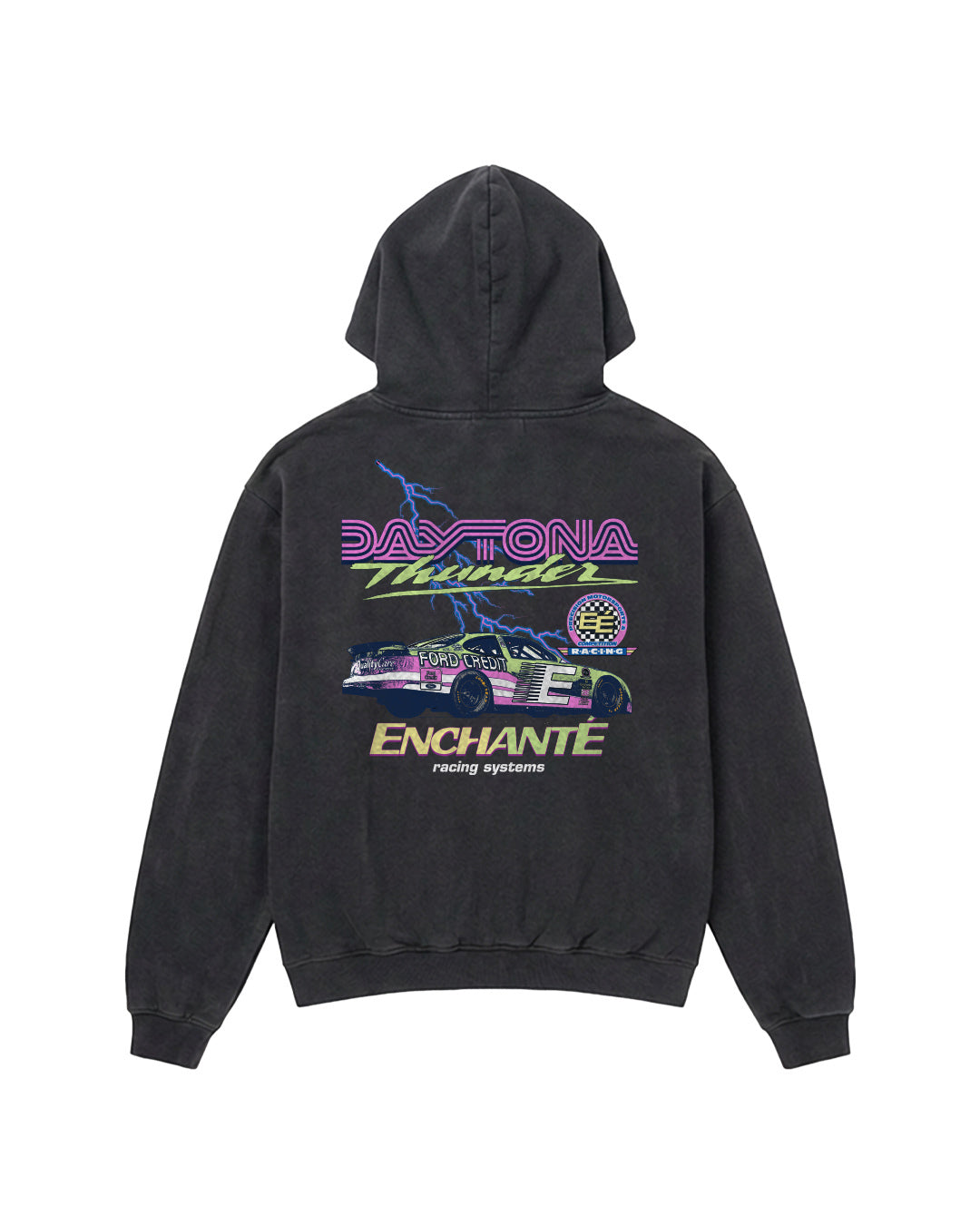 Rooted in the heritage of American speedways, this hoodie features bold racing graphics on the front and back. It’s made in the USA from 100% cotton — ideal for race weekends, long drives, and easy days.