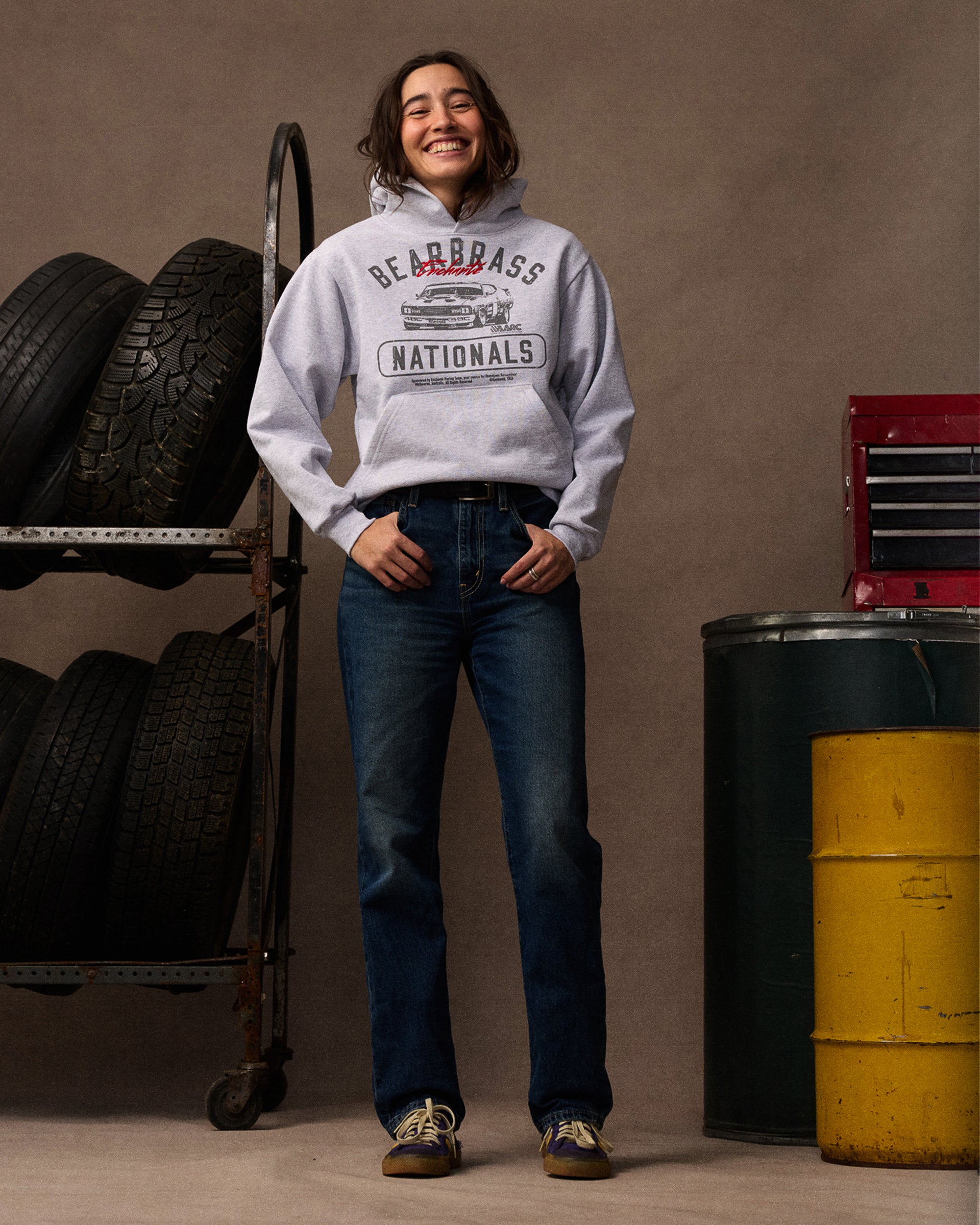 A classic hoodie with graphics inspired by vintage race team gear. Made in the USA from 100% cotton with embroidered and printed detailing.