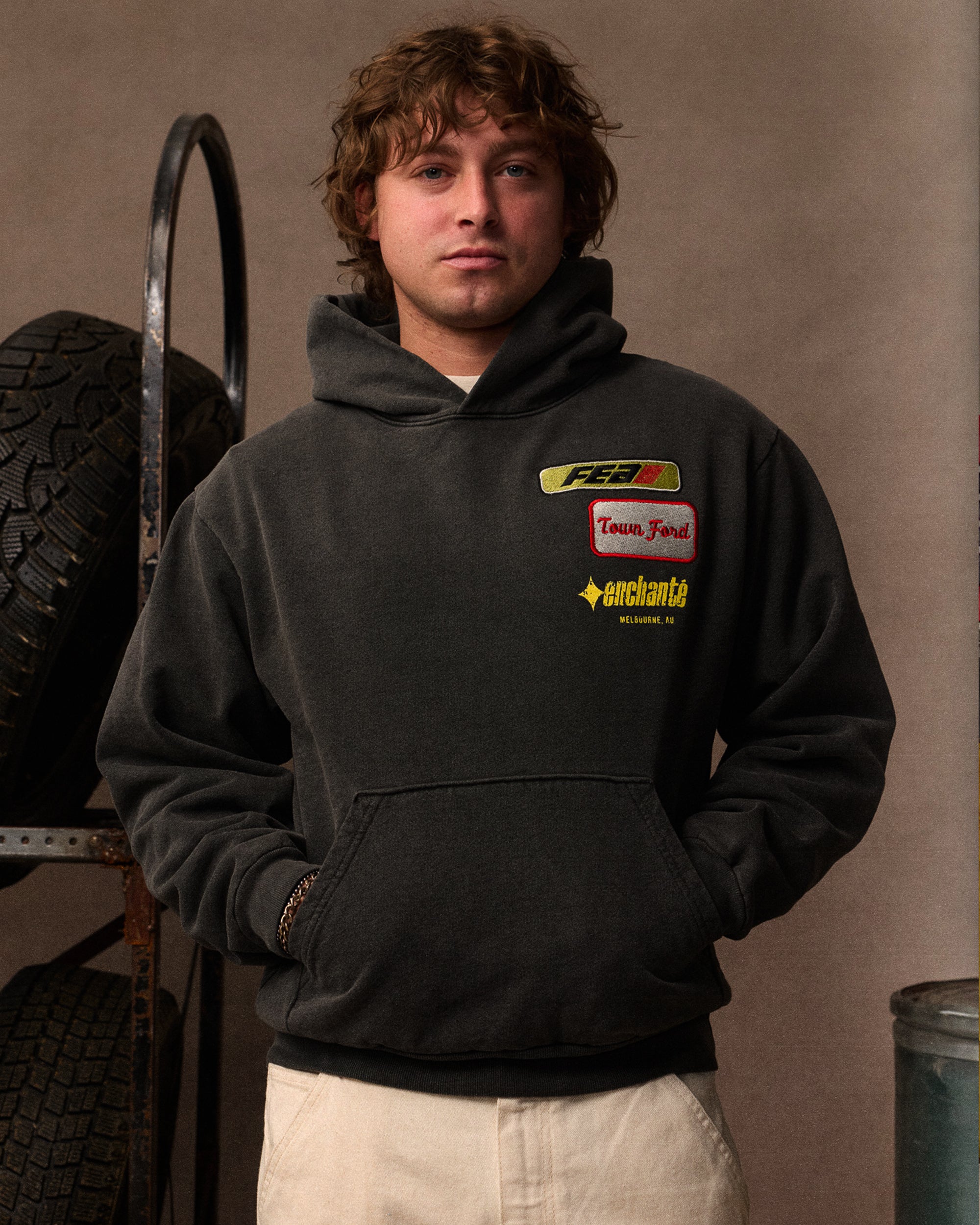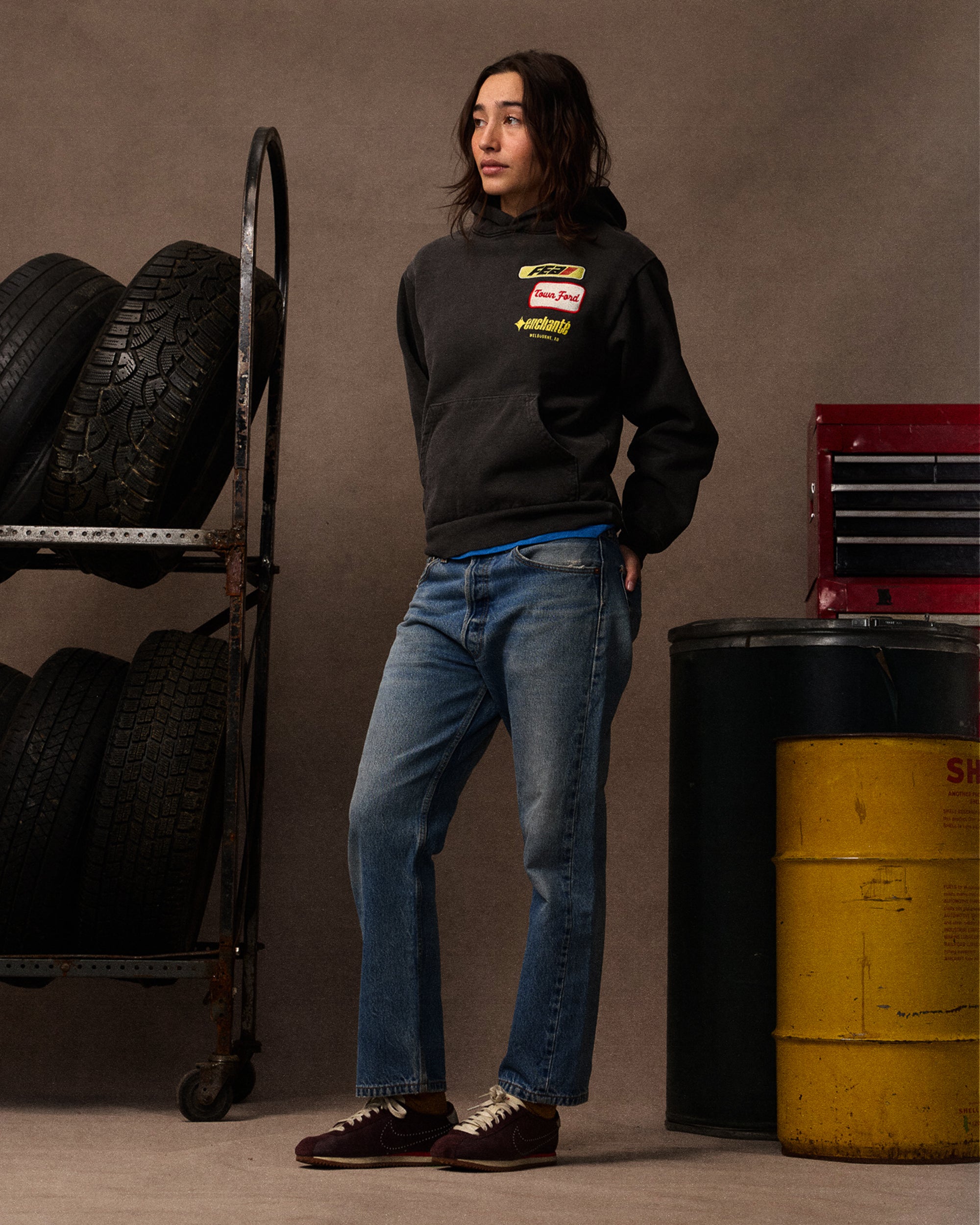 Chest embroidery and a bold back graphic give this hoodie a vintage team-uniform feel from the Backyard paddock. Made in the USA from 100% cotton with embroidered and printed detailing.